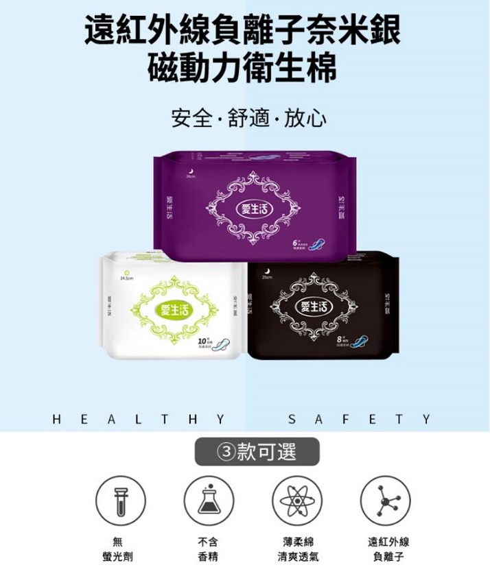 【遠紅外線負離子奈米磁動力衛生棉10包組-3款任選】
